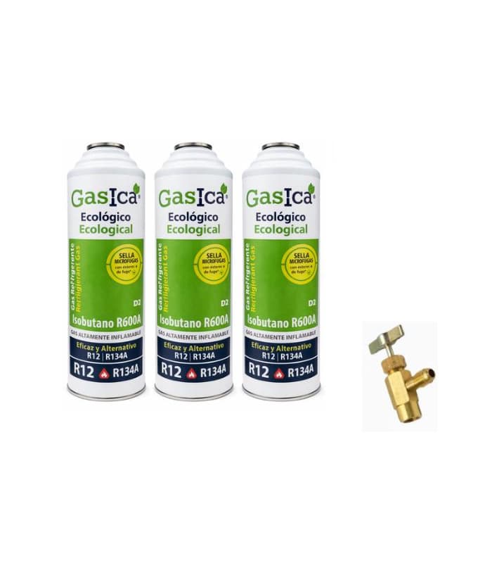 Pack Ahorro X3 Gasica D2 226gr + Válvula | Kit Gas Ecológico Refrigerante-Sustituto R134a/R12