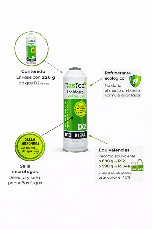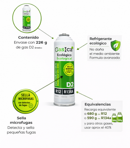 Pack Ahorro X2 D2 Gasica 226gr + Llave – Sustituto ecológico R134a/R12