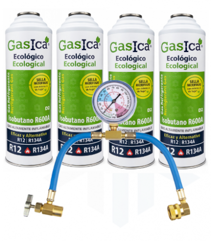 Kit Ahorro Pro Gasica D2 + Manómetro – Sustituto Gas refrigerante ecológico R134a/R12