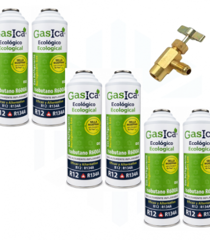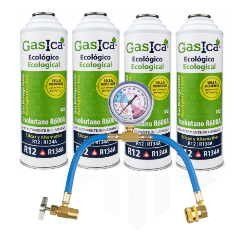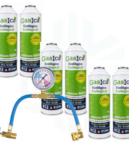 Kit Super Ahorro Profesional X6 Gasica D2 + Manómetro – Sustituto Gas refrigerante ecológico R134a/R12 (copia)